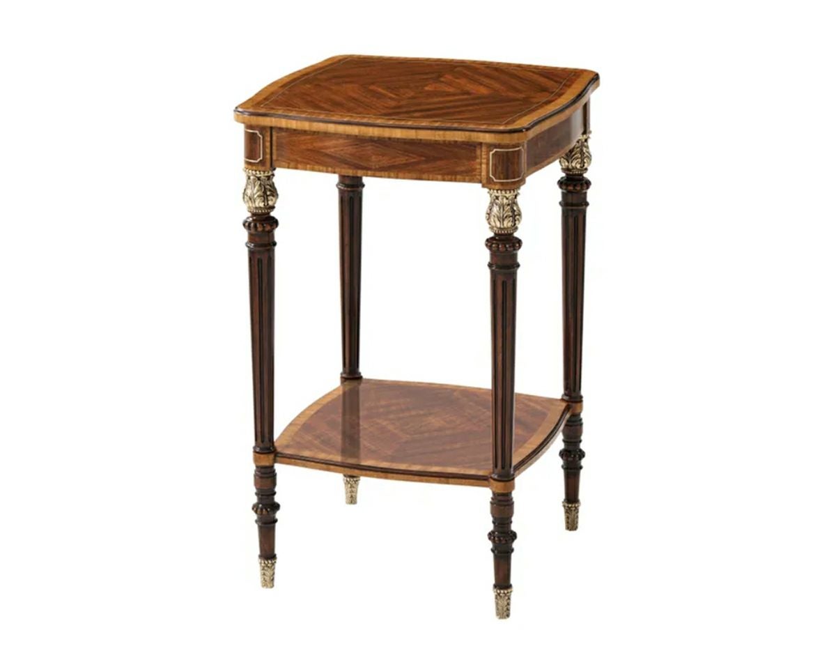 英国人デザイナー スティーブンチャーチのコレクション。 マホガニーを基調に真鍮の飾りが上品なリージェンシースタイルのアクセントテーブル。 ディスプレイするものを美しく演出するため、通常のランプテーブルより少し高め(74cm)に設定されております。